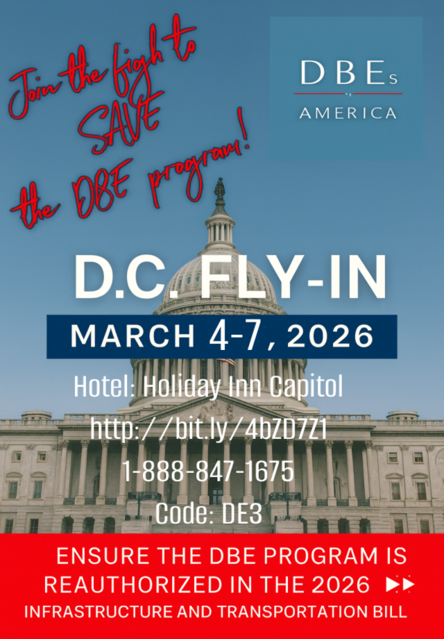 Due to the 2025 government shutdown, the DBEs of America and Women First D.C. Fly-in will be rescheduled to early Spring, 2026.